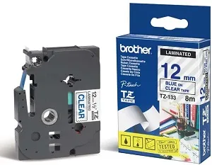 12-миллиметровая ламинированная лента (синий на прозрачном фоне), 8 м.