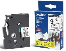 Плёнка повышенной адгезии для наклеек Brother TZe-S221, чёрный шрифт на белой основе, размер 9 мм х 8 м.