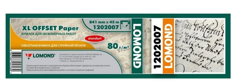 —Бумага Lomond Бумага Lomond инженерная "Стандарт" 841мм х 45м 80 г/м2 втулка 2"/50мм (арт. 1202007)