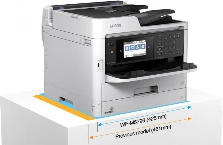 Epson WorkForce Pro WF-M5799DWF — это монохромное многофункциональное устройство формата А4 для малого и среднего офиса с низкой себестоимостью печати и стоимостью владения.