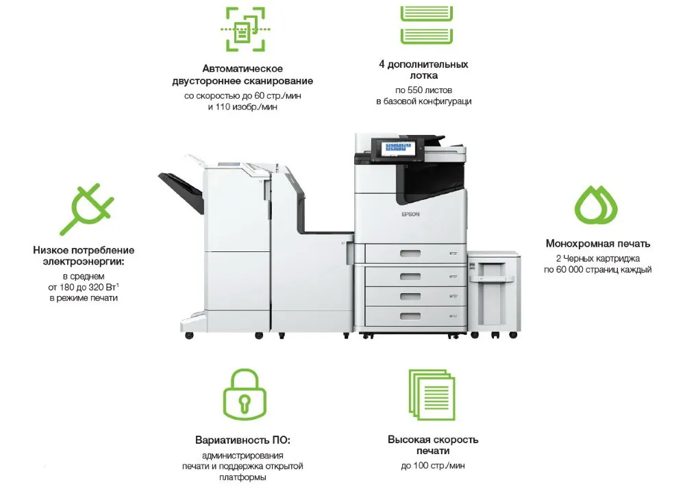 Epson WorkForce Enterprise WF-M20590D4TW - высокопроизводительное монохромное офисное МФУ формата А3+ с линейной печатающей головой