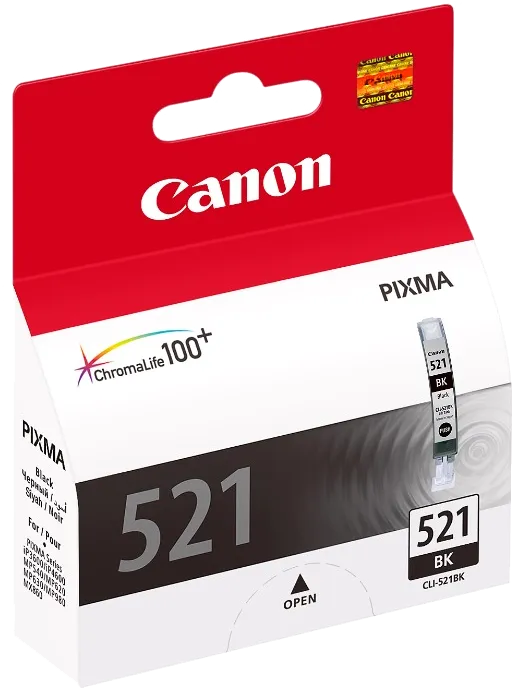 Оригинальный картридж чёрный Canon CLI-521 BK для PIXMA iP3600, iP4600, iP4600x, iP4700, MP540, MP540x, MP550, MP560, MP620, MP620B, MP630, MP640, MP980, MP990, MX860, MX870 (9 мл.)