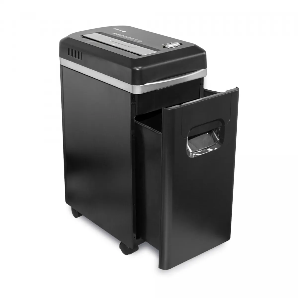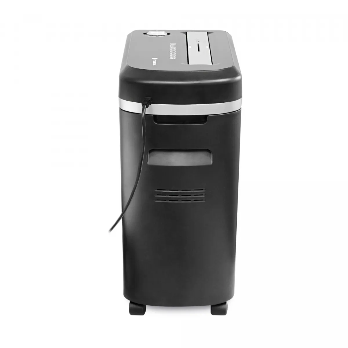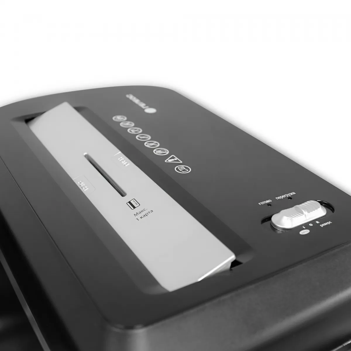 Оснащен загрузочным слотом с технологией "Безопасная загрузка", автоматические функции старта и остановки, остановка при наполнении корзины, кнопка принудительного реверса. Аппарат достаточно компактен, удобные ролики позволят быстро и без труда перемещать аппарат по офису.