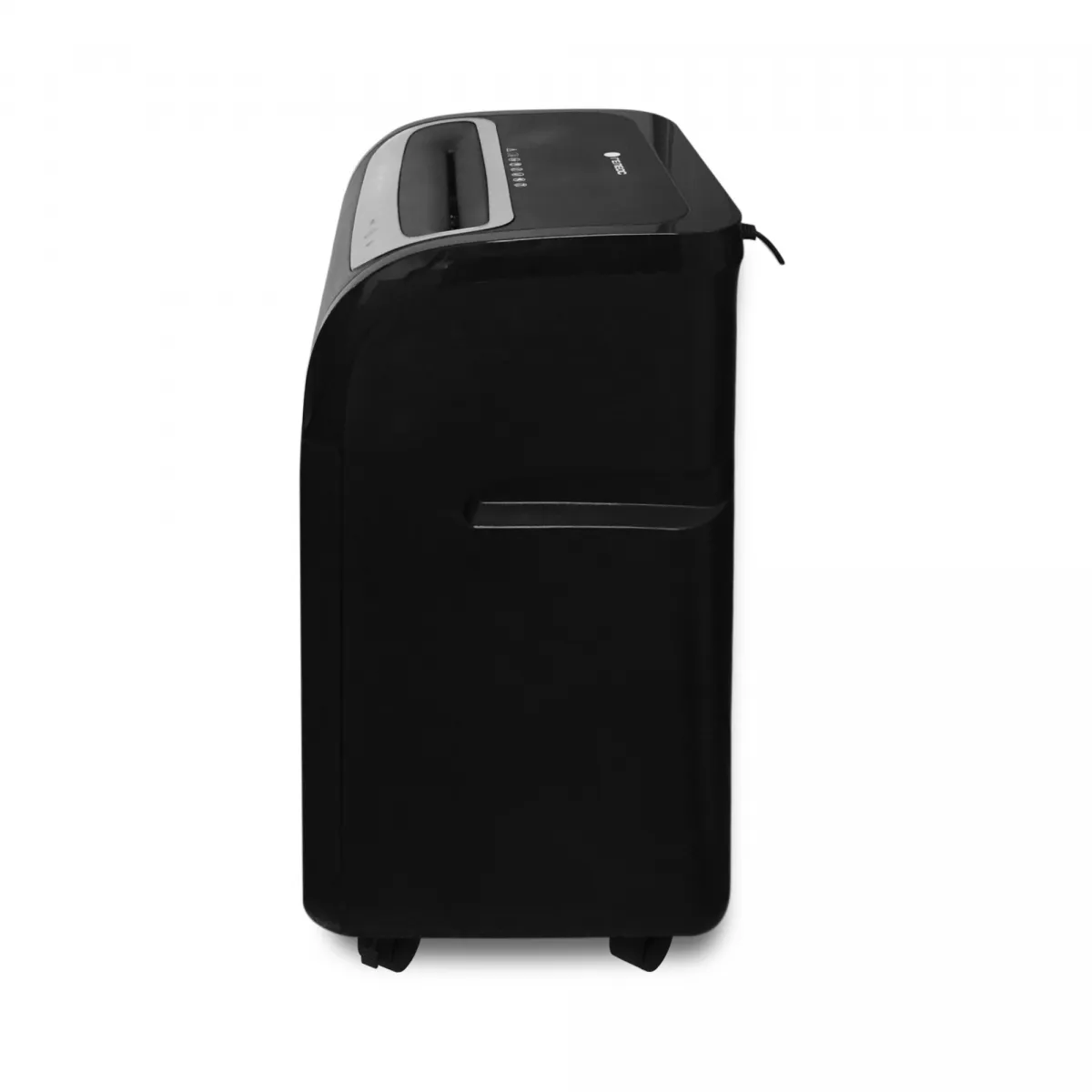 Уничтожитель для малого офиса с перекрестной резкой, обеспечивает Р‑5 уровень секретности. Отличается высокой производительностью до 27 измельченных листов за одну загрузку. Позволяет уничтожать компакт диски и пластиковые карты, ножи устойчивы к попаданию канцелярских скоб и мелких скрепок. Оснащен световой индикацией и сенсорными кнопками управления.
