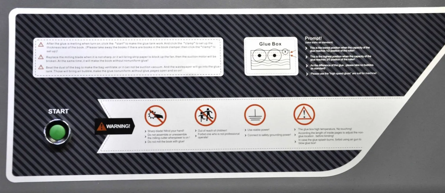 - Машина оснащена регулятором ширины книжного блока для предварительного открытия защитных шторок - если книжка толстая, шторки (фреза + клеевая ванна боковой проклейки) возвращаясь в закрытое положение не бьются друг об друга;