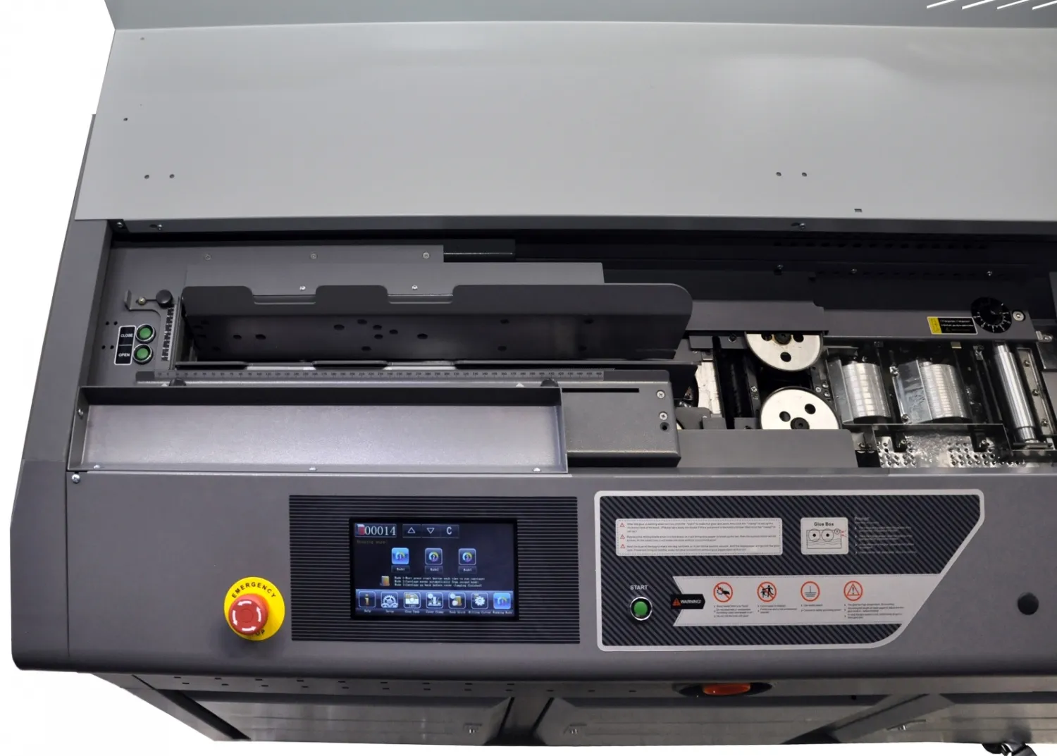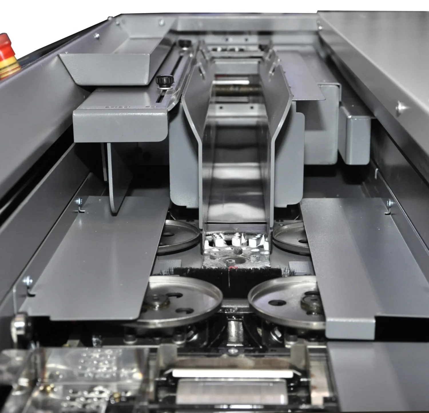 - Фреза с 9-ю ножами обеспечивает не только раскрытие фальцев, но и торшонирует корешок книжного блока, плюс два клеевых вала для нанесения клея на корешок - позволяют добиться идеального качества проклейки;