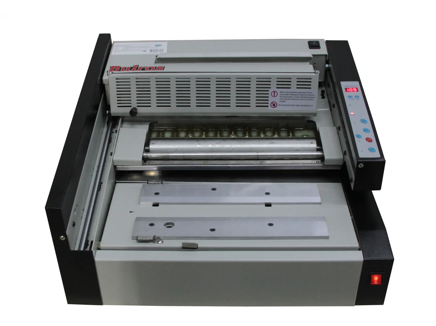 Корешок блока предварительно торшонируется встроенной фрезой для получения более качественного скрепления, затем на него автоматически наносится термоклей и происходит скрепление с обложкой. Блок может храниться долгое время, не теряя вложенных листов. Автоматическая работа GB-6210 проста в использовании и не требует специальных навыков.Встроенный микропроцессор. Вы только вставляете обложку и блок документов, остальное делает аппарат автоматически. Возможна также работа в ручном режиме. Регулировка температуры, установка времени зажима скреплённого блока. Ящик для отходов.