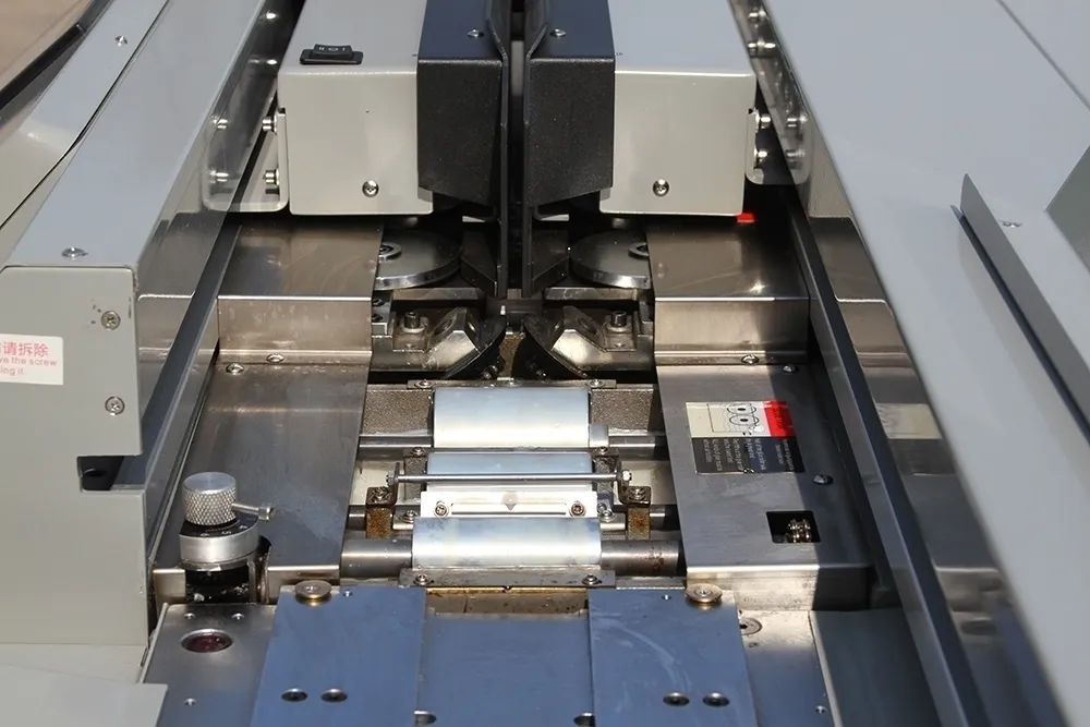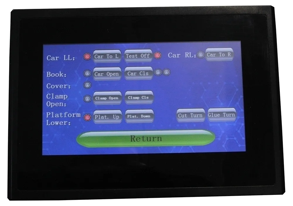 Возможность подачи блока по выбору с левой или с правой стороны. Встроенный микропроцессор. Большой цветной 7″ сенсорный LCD экран управления. Две раздельные ванны для клея с индивидуальной регулировкой температуры. Регулировка неравномерности прижима обложки. Регулировка температуры, контроль температуры. Фотоэлектрический датчик контроля блока и обложки. Ручной или автоматический зажим и разжим блока, регулировка силы зажима обложки, автоматическое разжатие по истечении установленного времени обжима переплета. Два ролика для нанесения клея и два ролика с отдельной клеевой ванной для боковой проклейки. Регулировка подачи клея. Блок торшонирования и фрезерования корешка защищен шторками, которые автоматически открываются и закрываются. После прохождения фрезы по корешку блока специальные щетки очищают готовый к проклейке блок от бумажной стружки. Мешок для сбора бумажной стружки. Модель укомплектована тумбой на колесах.