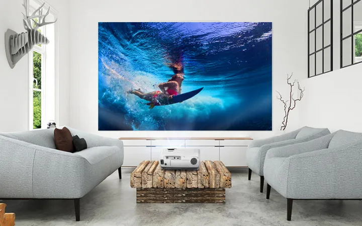 С помощью этого Full HD проектора для домашнего кинотеатра вы можете наслаждаться изображением на большом экране до 332 дюймов (762 см). Он качественно передаёт самые атмосферные сцены с глубоким черным цветом и четкими деталями в тенях, может увеличивать яркость в тёмных областях изображения за счет коррекции тёмной гаммы и поддерживает формат изображения 21:9, который используется в компьютерных играх.