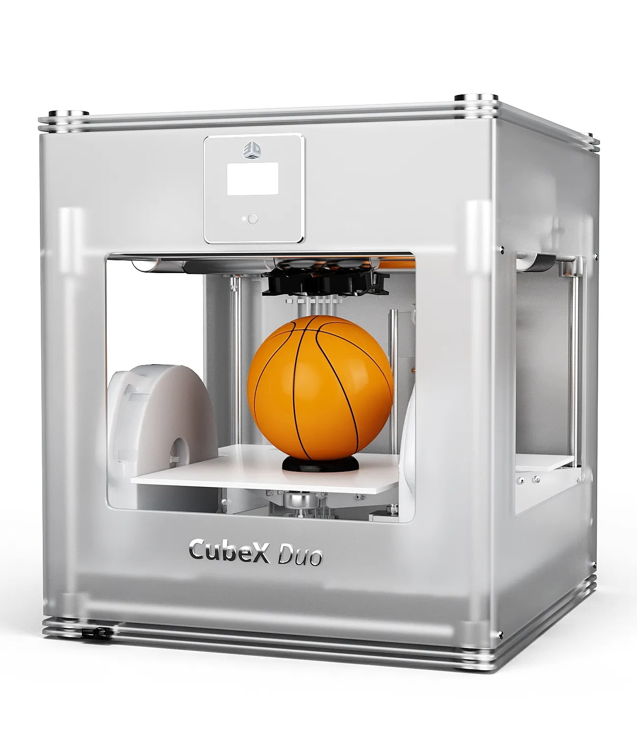 CubeX это новый цветной 3D принтер от Cubify признан лучшим в номинации Emerging Tech (Развивающаяся технология) на CES 2013 – это большой шаг вперед по сравнению с первым десктопным 3D принтером компании 3D Systems Cube. Новая модель имеет самую большую в своем классе площадь рабочей поверхности для печати (275 х 265 х 240мм). Он способен печатать объекты размером с баскетбольный мяч. В качестве расходного материала может использоваться как ABS пластик, так и экологичный материал PLA, и даже два материала одновременно.