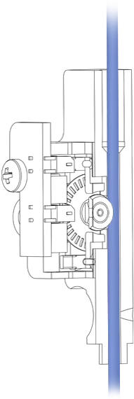 - Двухсторонний механизм подачи пластика. Механизм подачи пластика с двух сторон обеспечивает максимальную фиксацию пластика в подающих шестернях. Это снижает шанс срыва шестерней по пластику в случае резкого увеличения усилия протягивания нити.