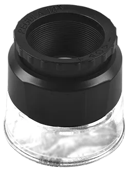 Компактная модель. Корпус из пластмассы. В зависимости от модификации комплектуется источником света LED и шкалой для оценки величины объектов.