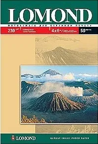 Фотобумага глянцевая Lomond 0102087 oдносторонняя для струйной печати, размер 4" x 6", плотность 230 г/м2, в упаковке 50 листов.