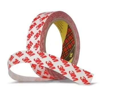 Лента представляет из себя прозрачную ПЭТ основу (0,012 мм), покрытую с двух сторон акриловым адгезивом толщиной 0,094 мм, и защитным слоем из белой бумаги с логотипом 3М.