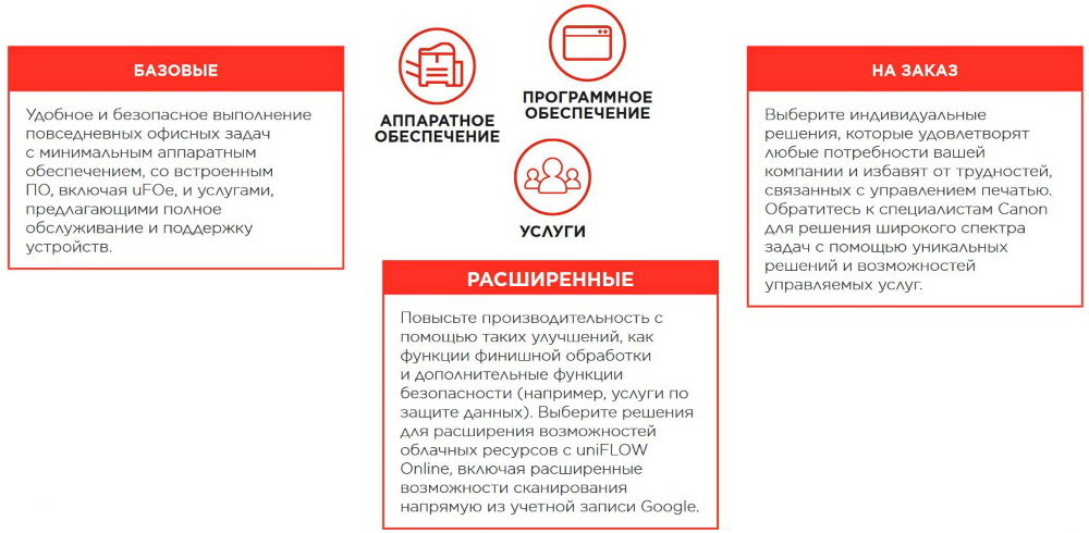 | Печать с мобильных устройств и из облачных сервисов | Набор программного обеспечения и решения на базе платформы MEAP обеспечивают возможность печати с мобильных устройств, устройств, подключенных к Интернету, а также из облачных сервисов в зависимости от потребностей пользователя. За подробной информацией обратитесь к торговому представителю. |