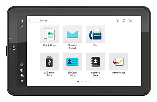 | Учёт | До 1 000 учётных записей; поддержка Active Directory (имя пользователя + пароль + email + smb папка); ограничение доступа к функциям; аутентификация по мобильному устройству (Android) опц.: Биометрическая аутентификация (сканер капилярного рисунка пальца); аутентификация по картам доступа(считыватель карт); аутентификация по мобильному устройству (iOS) |