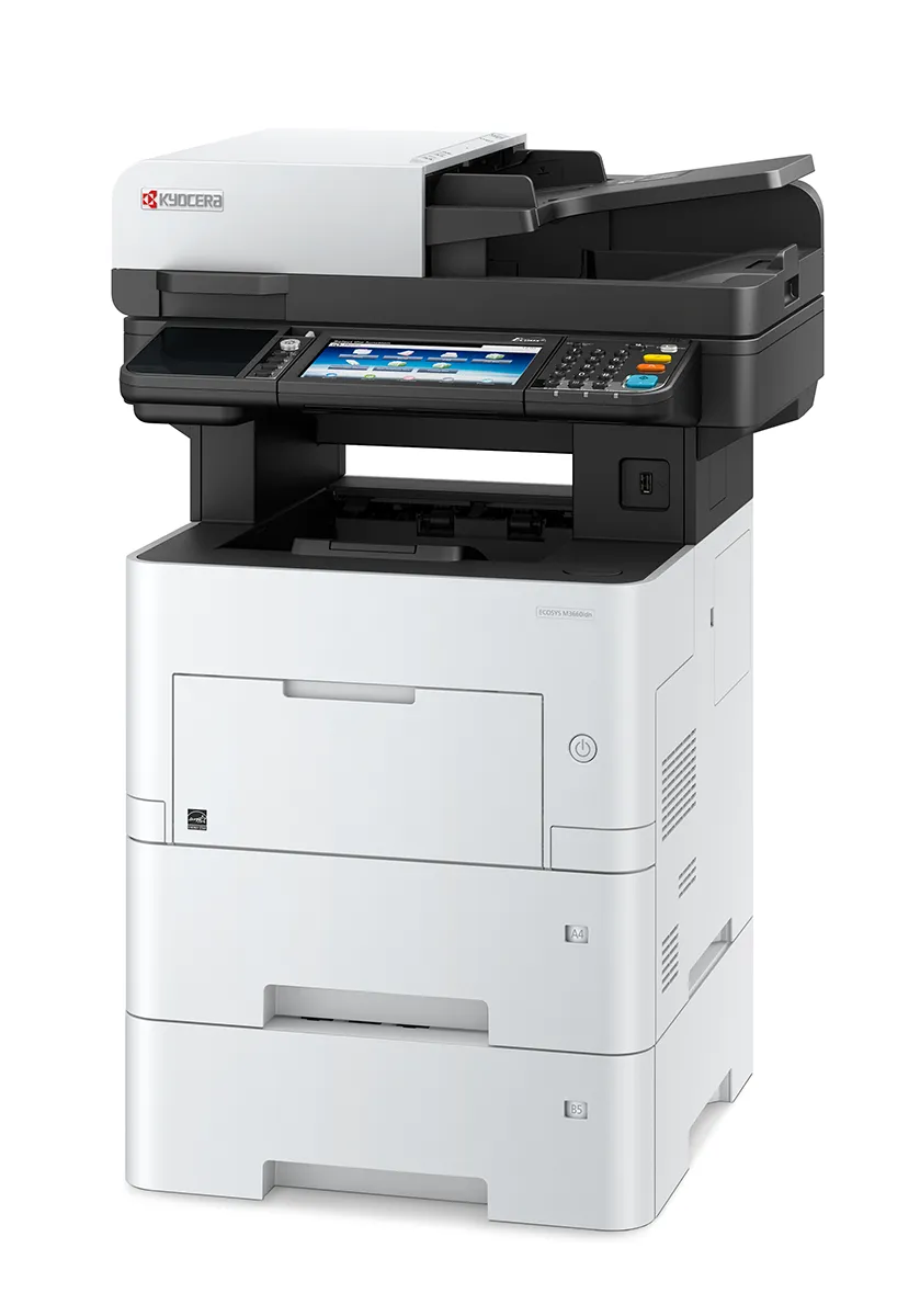 ECOSYS M3660idn - эффективное многофункциональное устройство со скоростью печати 60 страниц в минуту. Он был разработан для обеспечения самых низких затрат на печать на странице даже при самых высоких объемах печати. Кроме того, емкость ввода увеличилась до 2600 листов. Отлично подходит для средних и больших рабочих групп. M3660idn легко адаптируется к существующим процессам в организации благодаря открытой платформе HyPAS ™, которая позволяет использовать бизнес-приложения для оптимизации потока документов.