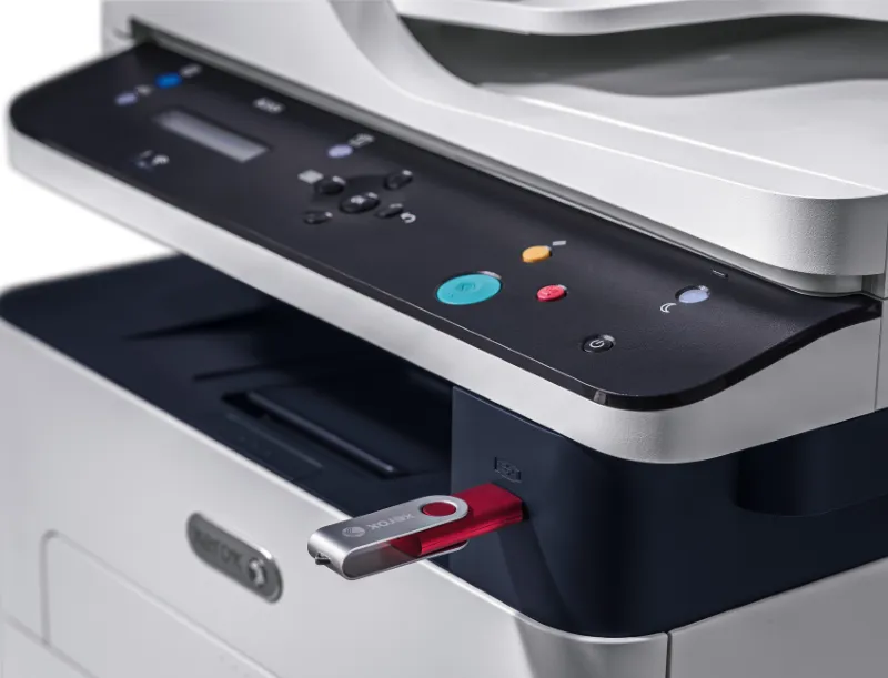 - Встроенная поддержка AirPrint, Google Cloud Print, Mopria и Android, обеспечивающая возможность печати с мобильных устройств, ноутбука или компьютера. А для МФУ Xerox B205 и B215 предусмотрена прямая печать с любого флэш-накопителя или внешнего жесткого диска через порт USB на передней панели.