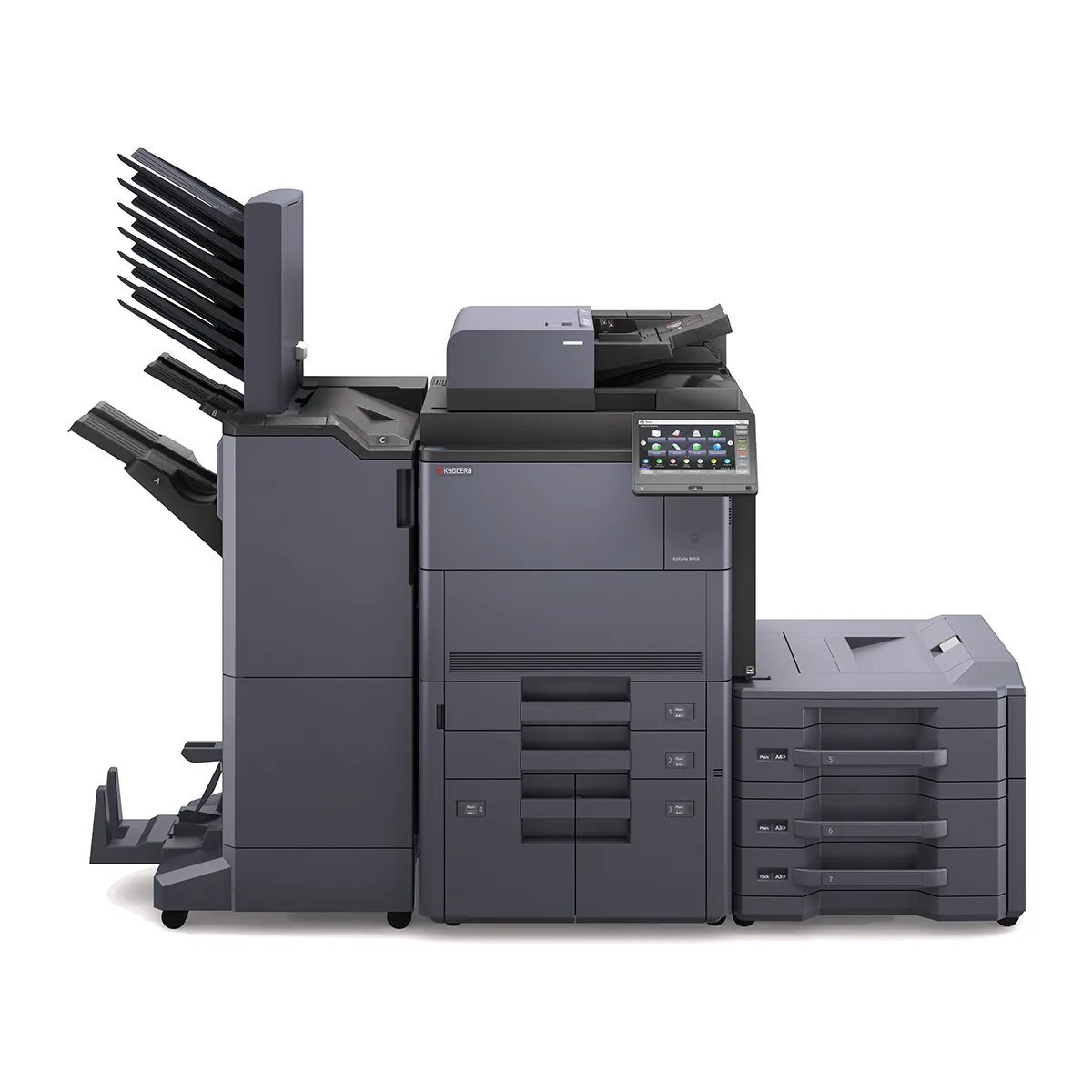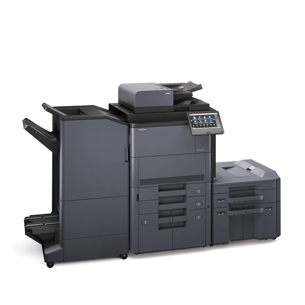 МФУ отличается настолько высокой производительностью, что способно повысить эффективность работы Вашего офиса в разы. Все это стало возможным благодаря изумительному качеству черно-белой высокоскоростной печати. Входная ёмкость на 7650 листов и выходная ёмкость на 4300 листов гарантируют успех даже на самых сложных и трудоемких проектах. Благодаря удобным опциям обработки бумаги, а также финишным опциям, Вы сможете самостоятельно производить такую сложную печатную продукцию, как брошюры или буклеты в три сложения. Cенсорный дисплей панели управления позволяет быстро и легко получить доступ ко всем функциям устройства, мгновенно решая стоящие перед Вами задачи.