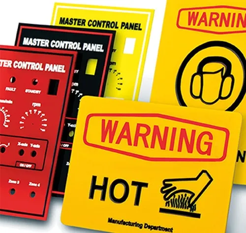 Персонализируйте промышленный инструмент, фирменные таблички и знаки безопасности из металла, пластика и других материалов.