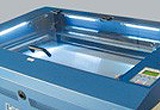 Универсальный лазерный станок, предназначенный для нанесения высокоточной гравировки (разрешением до 1500 DPI с диаметром лазерного пучка в фокусированном состоянии 0,09 мм) и высококачественного раскроя различных типов материалов с размером рабочего поля 965х610 мм. Максимальная скорость 2 м/с.