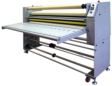 Ведущий вал каландра TitanJet модели RTM3-1520 имеет рифленую поверхность, что обеспечивает лучшее сцепление с транспортерной лентой. Более простая схема управления каландром, состоящая из контроллера температуры, тумблера включения нагрева и потенциометра регулировки скорости вращения вала. Регулировка натяжения транспортерной ленты осуществляется тремя валами. Механизм намотки включает два вала – один для ткани другой для трансферной бумаги. Встроенный рабочий стол шириной 50 см. делает каландр более компактным.