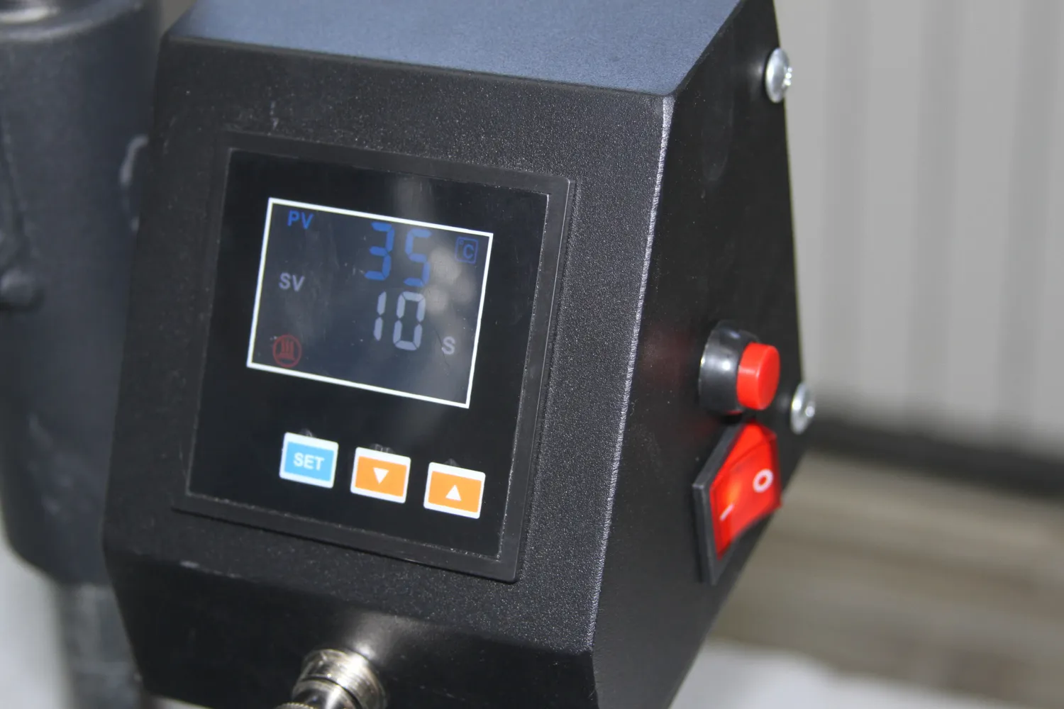 Плоский термопресс F-201 имеет простую, но одновременно надежную конструкцию. Встроено 6 нагревательных тенов. Уникальную система электронного контроля температуры 90-225 °C и времени (таймер 0-999 S) реализованную современным микрочипом — дает большую точность и скорость настроек.
