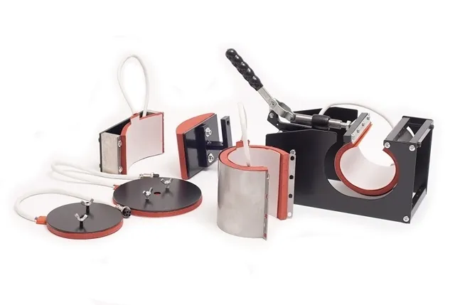 Насадки: 1 плоская, 2 для кружек, 2 для тарелок, 1 для бейсболок и рукавов. Размер насадок: плоский 290×380 мм, для кружек d 50-75 мм и 75-90 мм, для тарелок d 125 и d 155, для бейсболок 80×150 мм. Универсальный термопресс K-6 имеет простую, но одновременно надежную конструкцию. Уникальную систему электронного контроля температуры 90-225 °C и времени (таймер 0-999 S) реализованную современным микрочипом — это дает большую точность и скорость настроек.