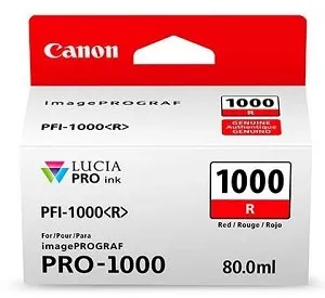 Чернильница с красными чернилами Canon PFI-1000 R объемом 80 мл позволяет вывести на печать до 5355 фотографий формата 10 х 15 см или до 935 фотографий формата А2