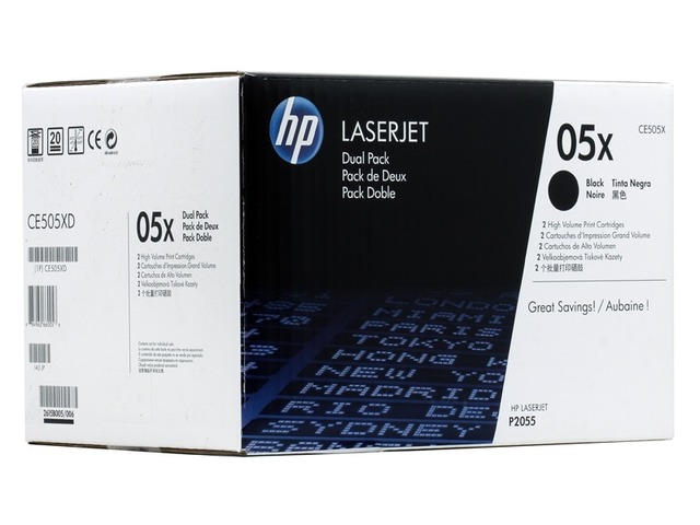 Двойная упаковка картриджей большой емкости CE505X для HP LaserJet P2055. Ресурс 2*6 500 страниц.