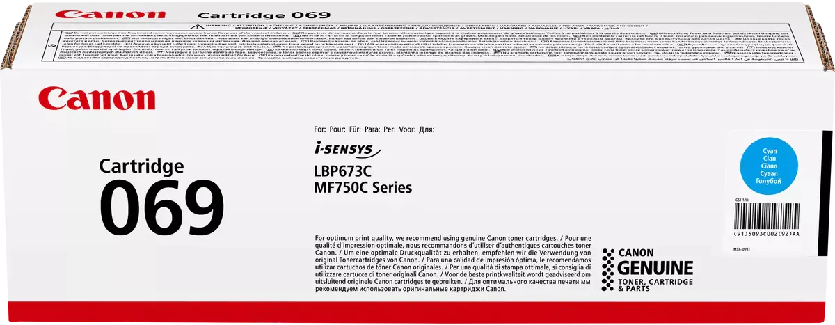 Тонер-картридж голубой Canon 069 Cyan для i-SENSYS MF752Cdw / MF754Cdw / LBP673Cdw (1900 стр.)