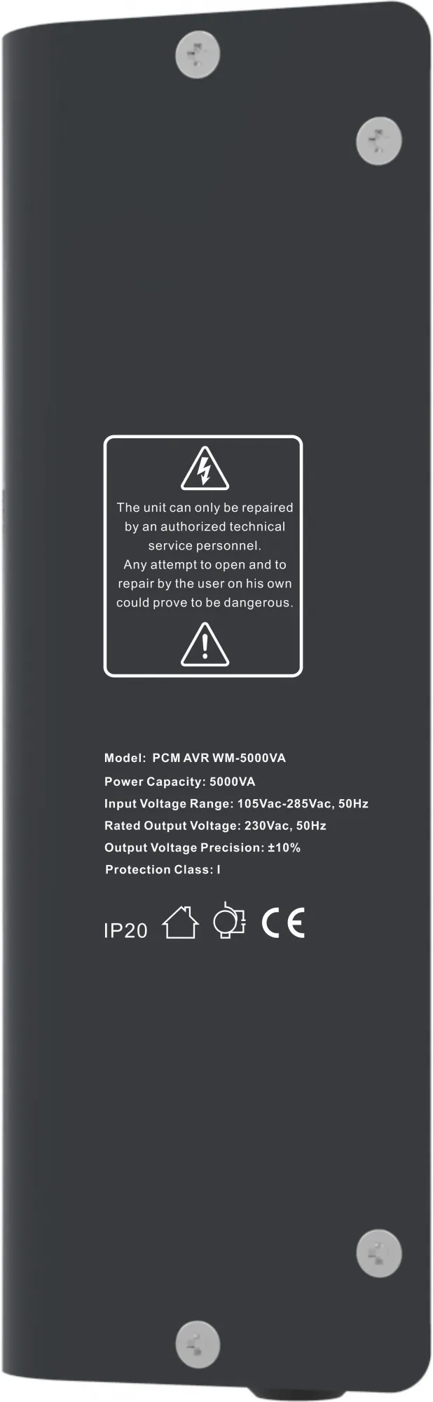 Automatic Voltage Regulator (AVR) – англ. Автоматический стабилизатор напряжения – электронное устройство на основе автотрансформатора с переключаемыми обмотками. Предназначено для регулировки входного напряжения в сторону повышения (режим boost) или понижения (режим buck). Он осуществляет ступенчатую корректировку входного напряжения в сторону его повышения (при пониженном входном напряжении) или понижения (при повышенном входном напряжении). Стабилизатор напряжения предназначен для обеспечения качественным и стабильным электропитанием разных потребителей, защиты устройств-потребителей от недопустимых отклонений питающего напряжения, высокочастотных и импульсных помех. Настенный стабилизатор напряжения WM-1000VA предназначен для питания бытовых электроприборов стабилизированным напряжением в условиях отклонения напряжения однофазной электросети ниже или выше допустимого значения. Стабилизаторы обеспечивают защиту подключенных потребителей и осуществляют их безопасное пере подключения после сбоев электроснабжения. Расширенный диапазон входного напряжения (~105 – 285 ± 3% В) позволяет обеспечивать электроснабжение устройств- потребителей даже в условиях критического состояния энергоснабжения. Применение микропроцессора в электронной схеме стабилизатора позволило реализовать следующий набор функций – повышенная точность стабилизации выходного напряжения, отображение текущего значения входного/выходного напряжения на LED-дисплее лицевой панели, отображение состояния стабилизатора, функция «ПАУЗА» с регулируемой задержкой подачи электропитания (в течение 6 или 180 с) при его возобновлении, защита от повышенного/пониженного напряжения в сети, от высокочастотных и импульсных помех, защита стабилизатора от перегрузки и короткого замыкания. Кроме перечисленного, стабилизаторы имеют встроенную тепловую защиту автотрансформатора. Стабилизаторы напряжения WM-1000VA имеют привлекательный современный дизайн, а также возможность для настенного крепления. Конструктивно реализован в прочном металлическом корпусе (толщиной всего 7.2 см), что позволяет устанавливать их не только в технических помещениях, но и в непосредственной близости от подключенных устройств.