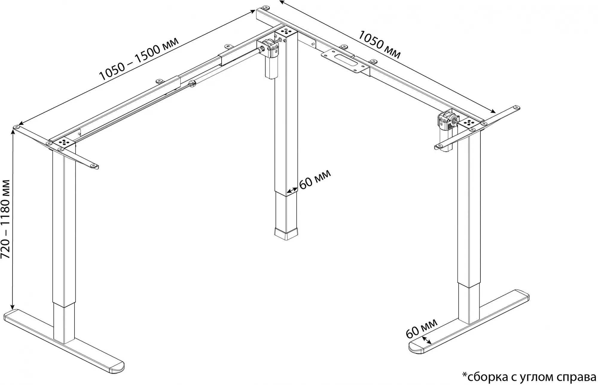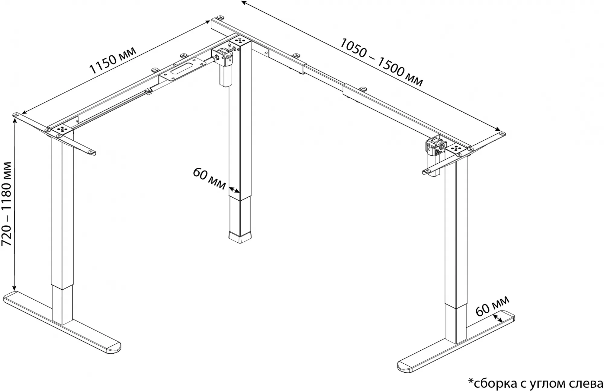 Подстолье Cactus CS-EDXLF-WT с электроприводом это современное решение для организации рабочего места. Подстолье оснащено двумя моторами, опоры состоят из двух сегментов. Модель CS-EDXLF-WT устанавливается как с левым, так и с правым углом, что позволяет пользователю выбрать оптимальное расположение будущего стола. Одна из сторон рамы имеет регулировку по длине: от 105 до 150 см, что очень удобно при выборе уникального размера столешницы.