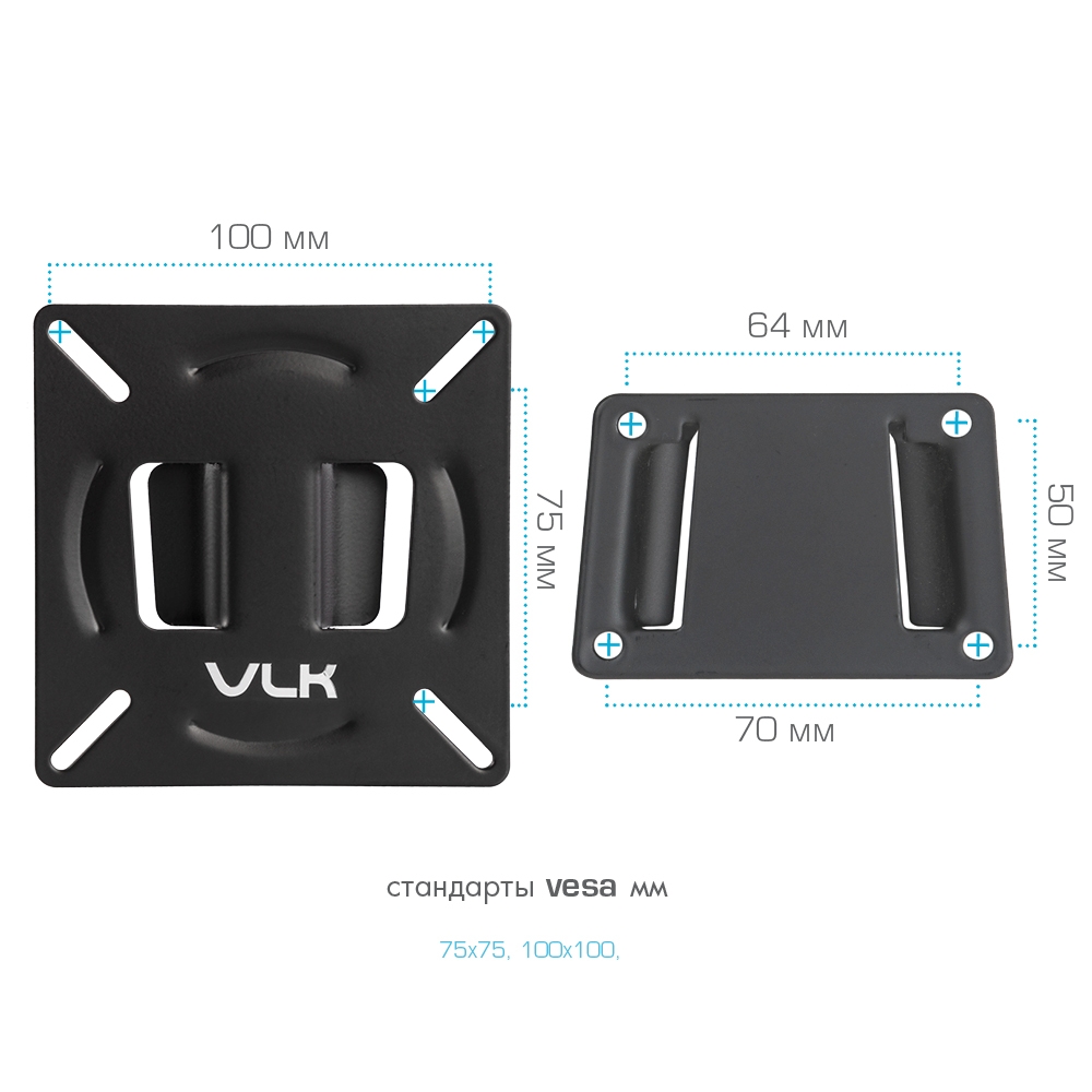 Крепёжные отверстия VLK TRENTO-100 BLACK изготовлены по международному универсальному стандарту VESA.