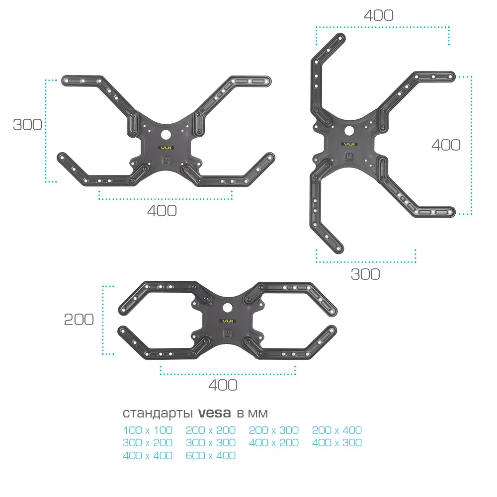 Крепёжные отверстия VLK TRENTO-12 BLACK изготовлены по стандарту VESA.