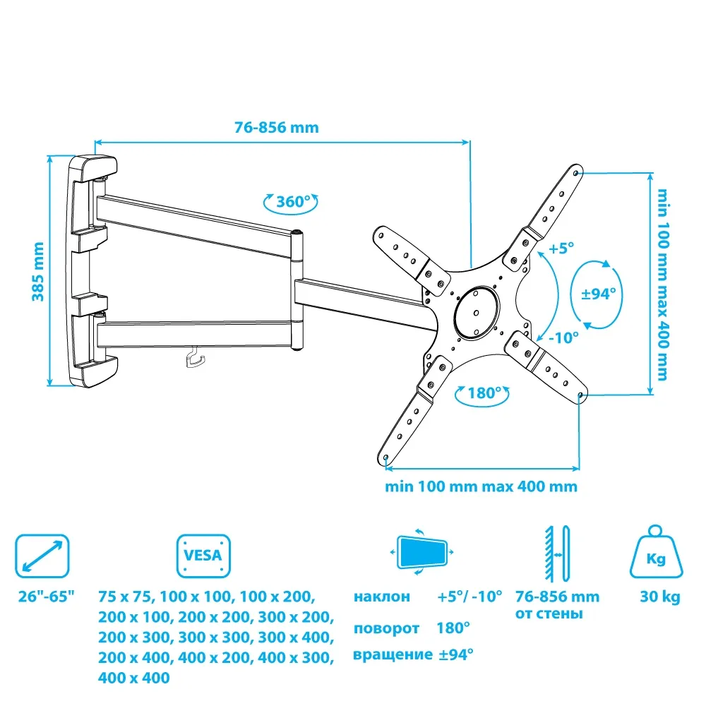 | Расстояние от стены | 76-856 мм |