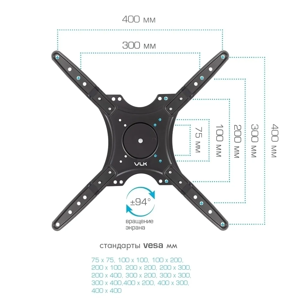 Крепёжные отверстия VLK TRENTO-19 BLACK изготовлены по стандарту VESA.