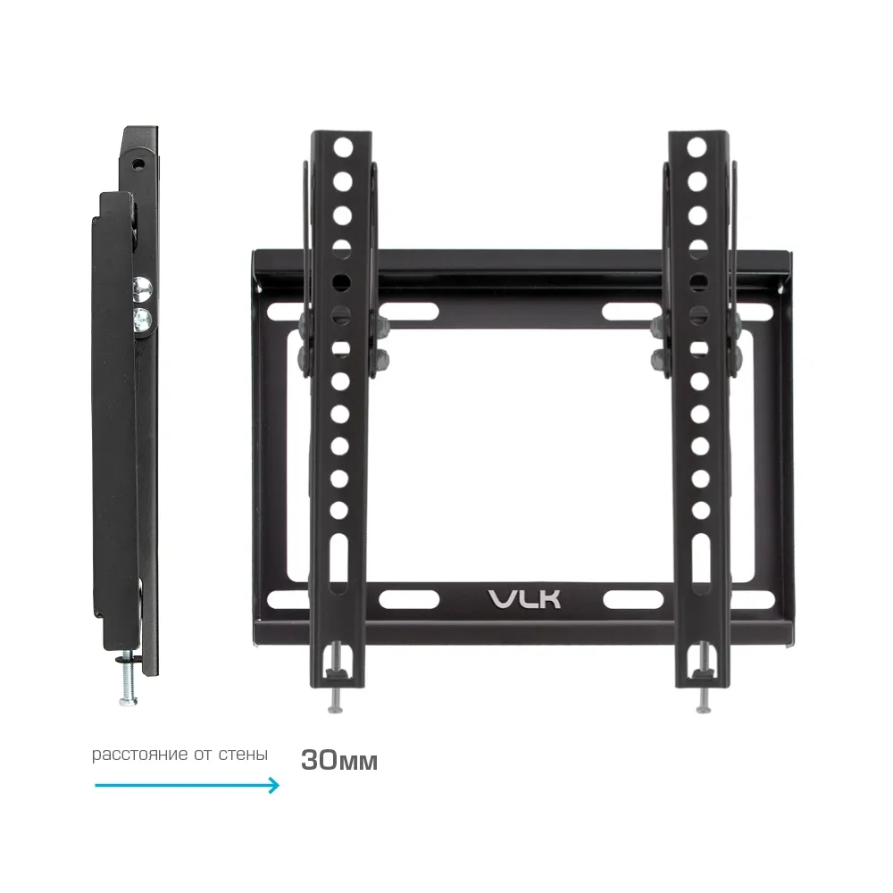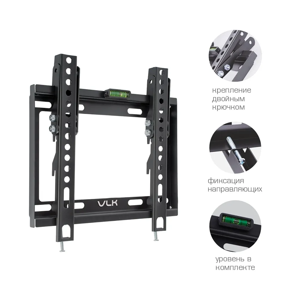 VLK TRENTO-36 BLACK надёжно удержит экран размером 15-48″ и весом 30 кг. Простая конструкция VLK TRENTO-36 BLACK идеально подойдет для самостоятельного монтажа. Наклонная конструкция регулировать экран вверх и вниз на 0 −12°.