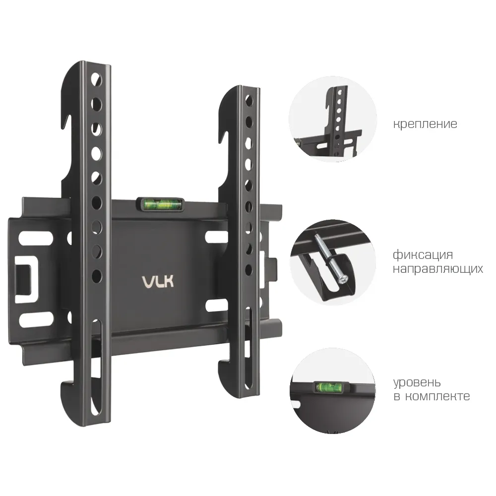 VLK TRENTO-37 BLACK надёжно удержит экран размером 15-48″ и весом 20 кг. Простая и интуитивно понятная конструкция VLK TRENTO-37 BLACK идеально подойдет для самостоятельного монтажа.