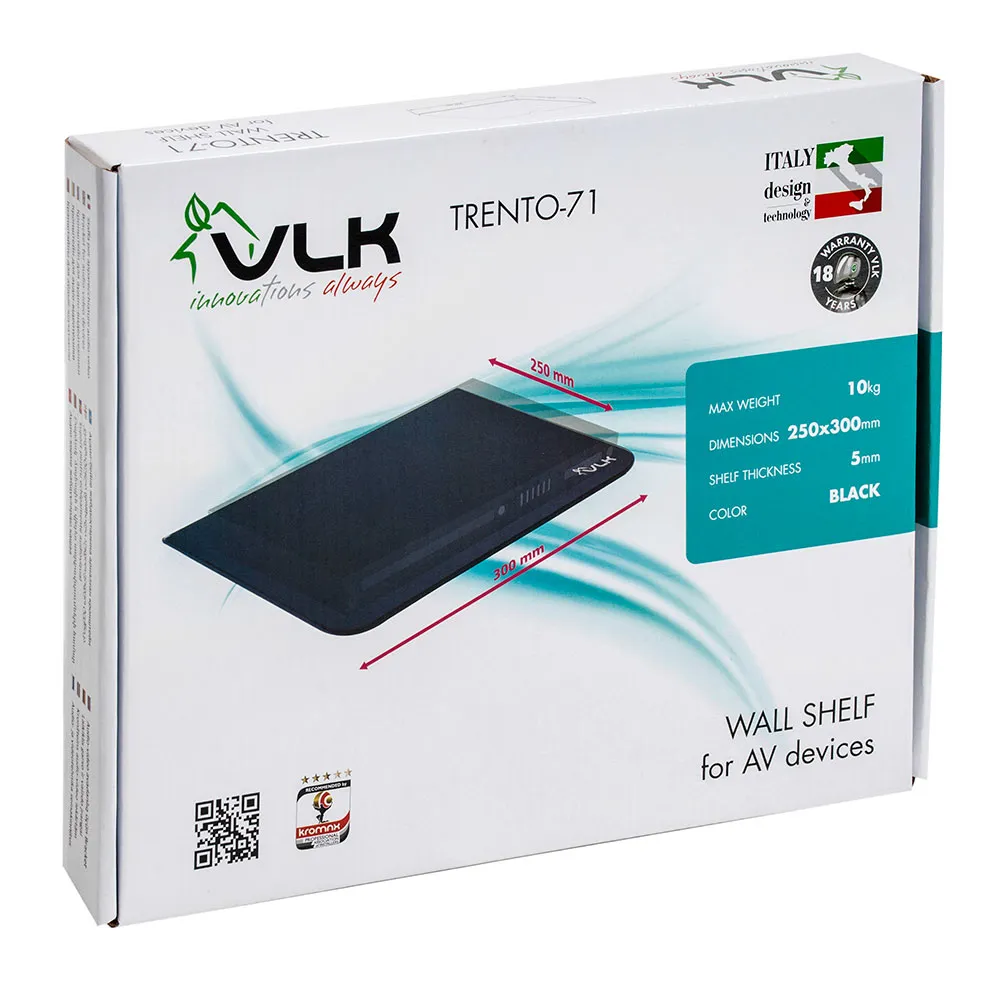 VLK TRENTO-71 BLACK легко крепится на стене, идеально подходит для самостоятельного монтажа, универсальная конструкция и надежные элементы служат для дополнительной прочности и выдерживают аппаратуру весом 10 кг.