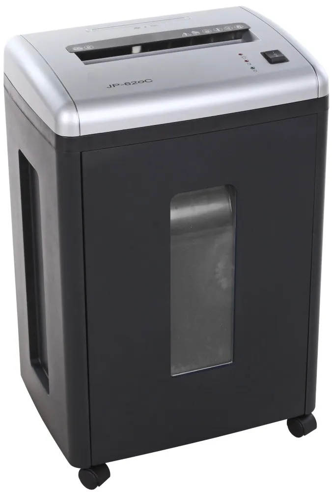 Модель Bulros 620C имеет корзину 22 литра и может уничтожать одновременно до 12 листов бумаги формата А4 (плотность 70 г/м2) на фрагменты 4x50 мм, а также CD/DVD диски и кредитные карты. Случайное попадание степлерных скоб в режущий механизм не влияет на работу шредера. Уничтожитель Bulros 620C оборудован отдельным приемным слотом для CD/DVD дисков и кредитных карт. Диски разрезаются на полоски, шириной 35 мм.
