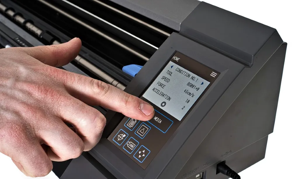 - Поддержка автономной резки файлов по заданию с USB-носителя без подключения плоттера к компьютеру;