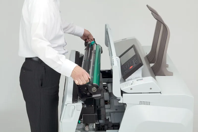 Аппарат оснащен системой контроля влажности, которая позволяет задавать оптимальные параметры осушения внутри отсека рулоноподатчиков для достижения наилучшего качества переноса изображения на бумагу и беспрепятственного прохождения бумаги и кальки по всему тракту.
