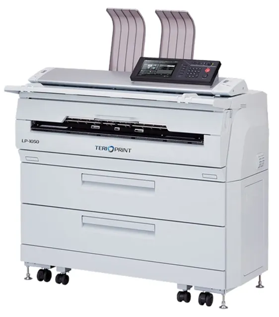 Аппарат Terioprint LP-1050 MF — это многофункциональная инженерная система, в базовой комплектации поддерживающая функции копирования, печати, сканирования черно-белых и цветных документов, а также копирования чертежей на отдельный цветной струйный плоттер без использования дополнительного компьютера.