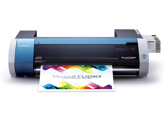 Roland BN-20 – настольный принтер/каттер с шириной рабочего поля 50 см и возможностью печати белым или серебряным цветом. Главной особенностью BN-20 является восьмиканальная печатная головка нового поколения, которая использует 3 различных размера капли в одном режиме печати, а всего может генерировать 7 различных размеров, что в свою очередь обеспечивает высококачественную печать, в том числе и сложных градиентов. Использование белого цвета позволяет выделять отдельные области печати на широком спектре прозрачных материалов, таких как прозрачная плёнка, пластик и другие. Использование серебряных чернил ECO-SOL MAX позволит создавать уникальные эффекты имитации металлических поверхностей, а готовая библиотека металлизированных цветов и текстур в свою очередь гарантирует быстрый и удобный процесс создания таких макетов.