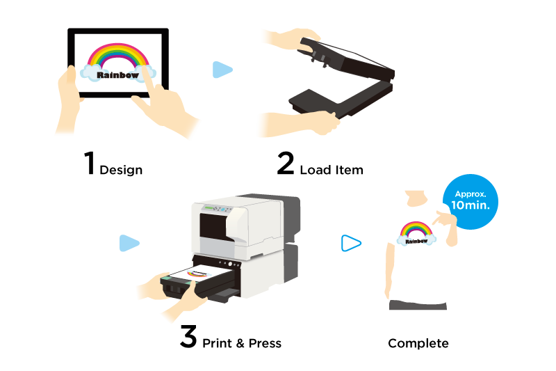 Полностью закрытый VersaSTUDIO BT-12 печатает на текстиле быстро, удобно и безопасно. Автоматический процесс займет буквально несколько минут и VersaSTUDIO BT-12 совместно с модулем сушки, напечатают ваше изделие и закрепят отпечаток. За три простых шага вы получите качественное и готовое к эксплуатации изделие.