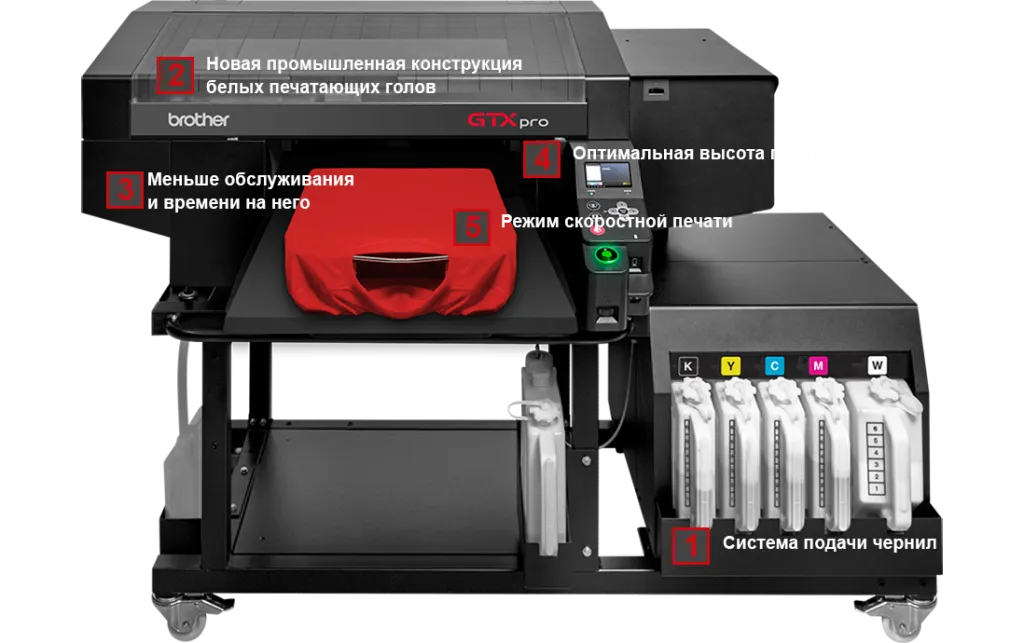 Результатом является компактный промышленный принтер для прямой печати на текстиле за приемлемую цену для массовой печати на одежде, сохраняя хорошо известные преимущества принтера Brother GTX.