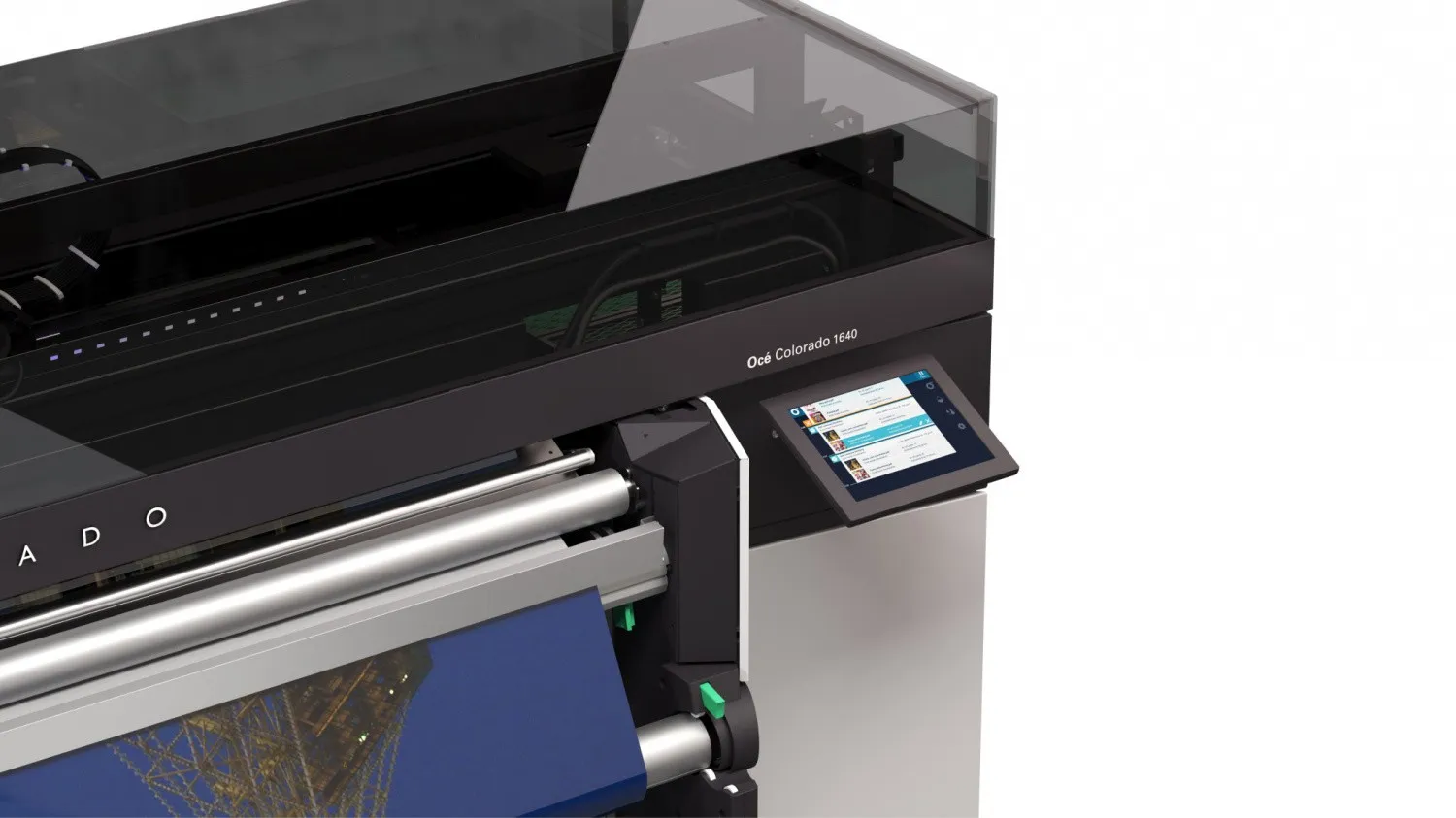 Принтер Canon Colorado 1640 устанавливает новый стандарт в области индустриализации и автоматизации. Устройство оснащено крупногабаритным ящиком, способным выдержать до двух 110-фунтовых рулонов материала одновременно. После запуска механизм печати может переключать задания между рулонами одного и того же материала, и размера или разных материалов без помощи оператора.