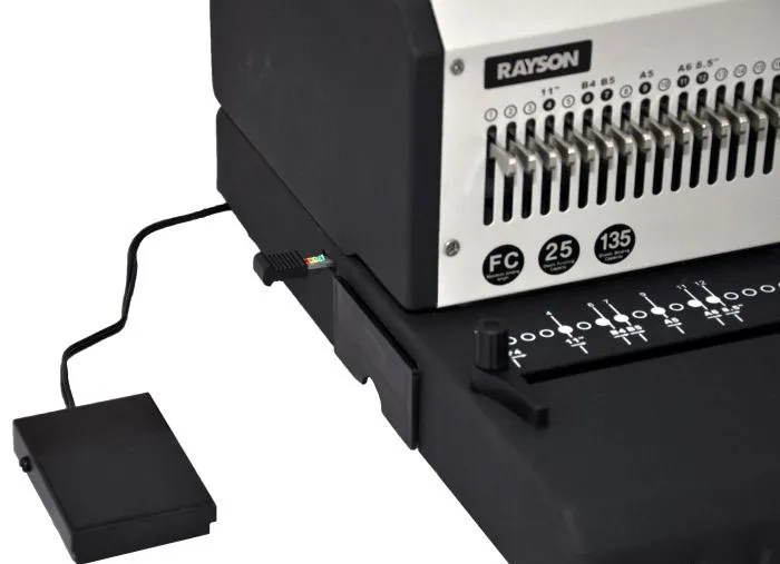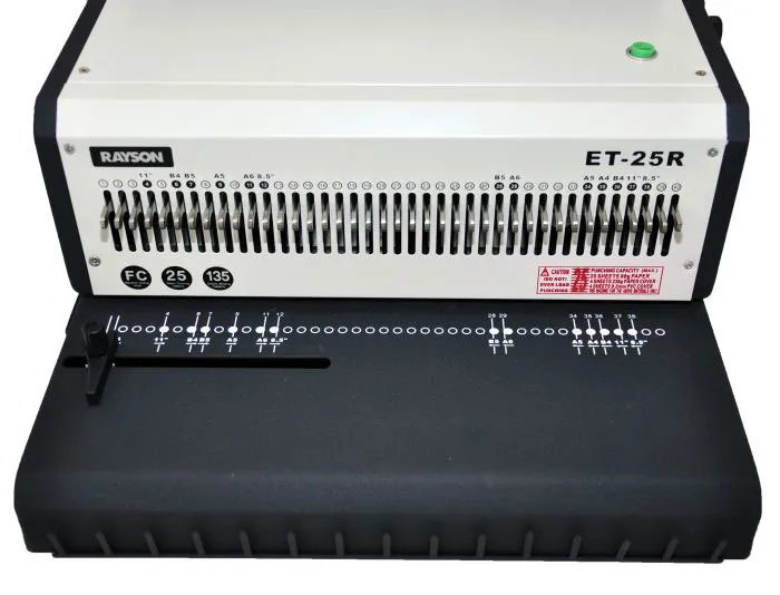 | Дополнительные характеристики | - шаг 3:1, круглые отверстия 40 шт х d=4 мм, регулятор формата листа, неограниченная длина переплета, 3 режима (2.5, 3.5, 5 мм) контроля отступа от края листа, до края пробиваемых отверстий, отключение всех ножей, ножная педаль перфорации, регулировка уровня диаметра зажима пружины. |