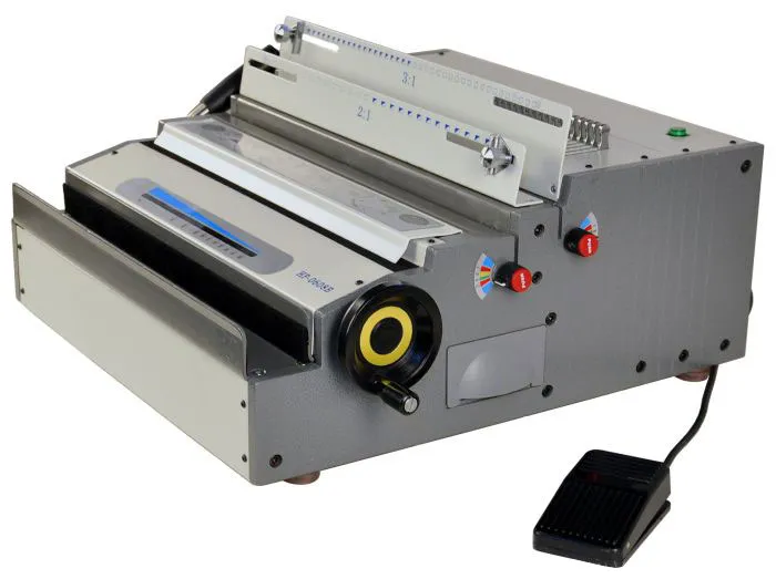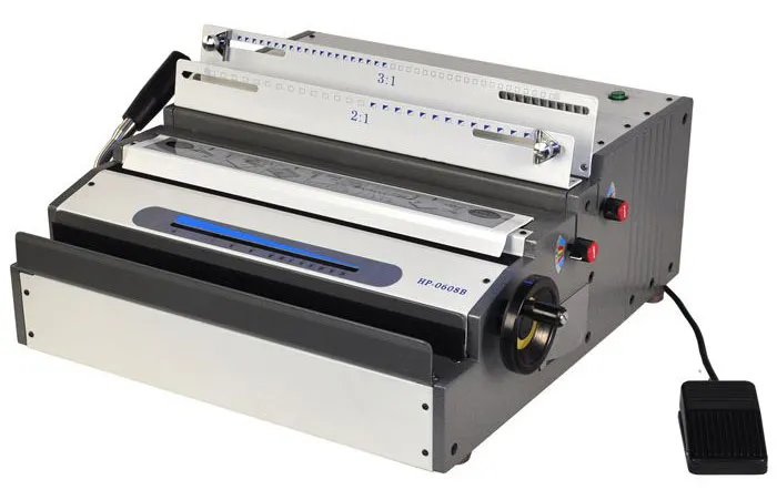 Профессиональная переплетная машина HP0608B на металлическую пружину в металлическом корпусе от фирмы Rayson c приличным запасом мощности. На этой машине Вам будут доступны оба шага для металлических пружин «2:1» и «3:1». Пробитие отверстий в бумаге производится при нажатии кнопки на корпусе или напольной педали. HP0608B пробивает квадратные отверстия.